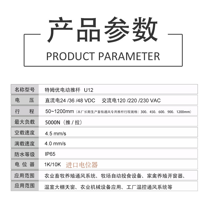 本款適用于電動(dòng)通風(fēng)窗的U12電動(dòng)推桿具有如下特點(diǎn):